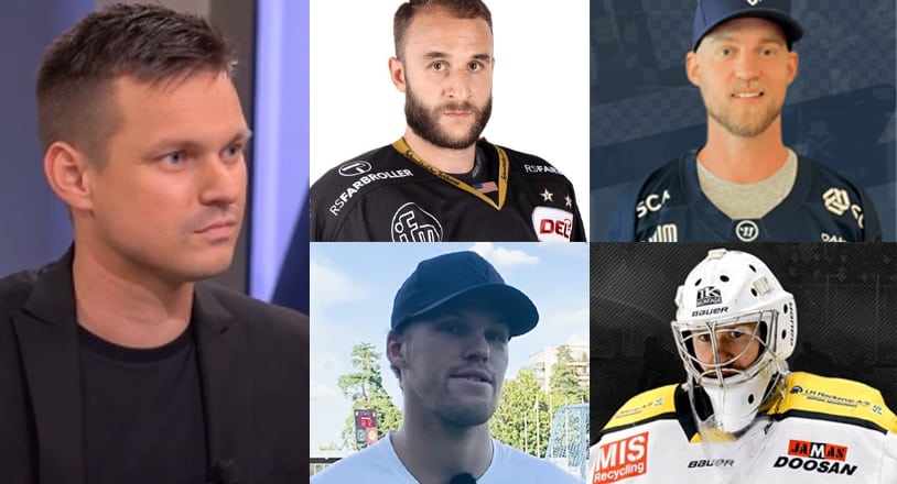 Hockeyettan-experten Mikael Mjörnberg har gjort en ranking på ligans 30 bästa värvningar – här snackar han om listan. Infällda i bilden – topp fyra på listan: Henrion, Gustafsson, Åsell och Jidskog.