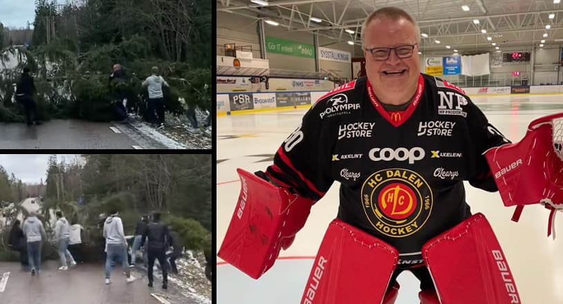 – Vi hade precis passerat Hovmantorp och kom ut på en raksträcka. Då ser vi att det faller ett träd 300 meter framför oss, så det var bara att bromsa in, berättar busschauffören Johnny ”Puma” Gustavsson för hockeyettan.se.