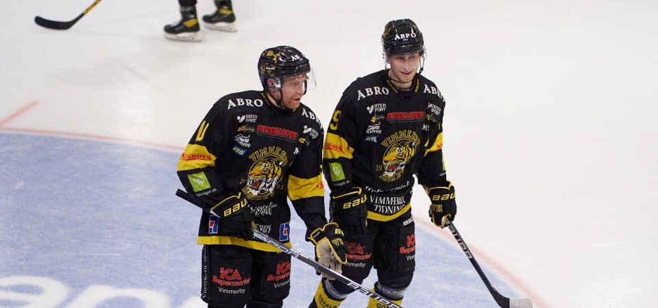 VH fick en smakstart när lagkapten Jakob Karlsson (på bilden) gjorde 1-0 i boxplay efter en egen prestation. Ledningen höll i knappt fyra minuter innan tidigare VH-spelaren Oscar Gustafsson kvitterade. Men bara knappt två minuter senare återgav Niki Koskinen VH ledningen med 2-1 som också blev resultatet in i första periodvilan.
