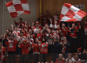 Borås-fansen firar comebacken i Hockeyettan. FOTO: TOBIAS JOSEFSSON/MJÖLBY HC