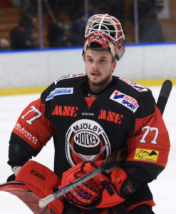 Adam Ingelfeldt, målvakt i Mjölby. FOTO: TOBIAS JOSEFSSON/MJÖLBY HOCKEY