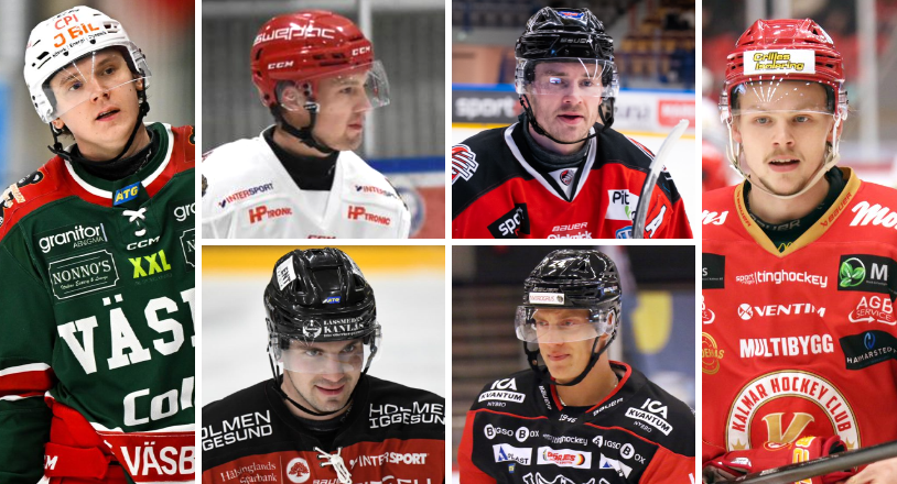 Wassenius, Rommel, Högberg, Wiberg, Skladnichenko och Skager – tänkbara matchvinnare i de sex lagen i kvalserien. FOTO: ERIK KRUSE, PIOTR ARVIDSSON, OLIVER ÅSTRÖM, FLYWOOD STUDIO, LEIF HELLERIN