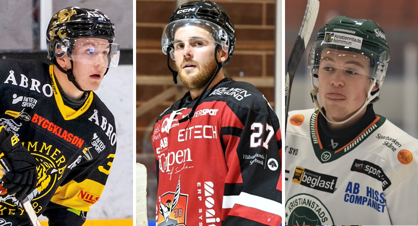 Eddie Levin (Vimmerby), Alexander Bjurström (Hudiksvall) och Elliot Ekefjärd (Kristianstad) – vinnare på torsdagen. FOTO: MEIJER MEDIA, FLYWOOD STUDIO, LEIF HELLERIN