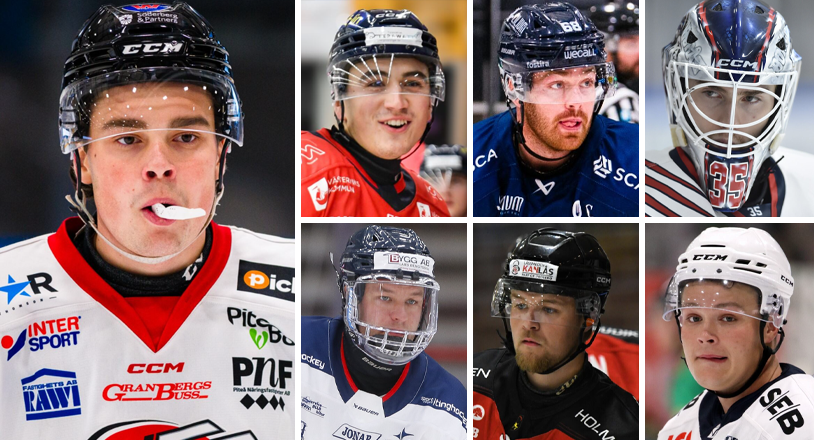 Till vänster: Lundkvist. Översta raden från vänster: Ståhl, Lindblom, Andrén. Nedersta raden från vänster:Dahse, Torstensson, Ek Koskela. Alla med på topp 25-listan. FOTO: ANDREAS PLANCK, HAMPUS NORRSTRÖM, ANDERS GUSTAFSSON, FREDRIK SKOG/BRIGHTPHOTO, SOFIE ALEXANDRA KITTERØD