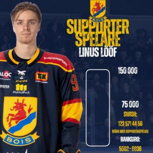 Linus Lööf blir årets supporterspelare! Linus gjorde en kanonsäsong säsongen som gick, och framför allt blev han bara bättre och bättre ju längre säsongen gick. Under slutspelet så centrade han Bois så vassa andrakedja, en kedja som fullständigt sprutade in poäng.