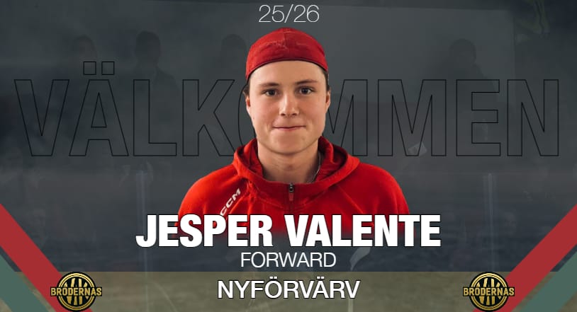 Den aviga högerskytten Jesper Valente är nästa spelare in till Brödernas/Väsby. Jesper anländer precis som Kalle Forslund, närmast från Almtuna där även han spelat under sina fyra senaste säsonger.