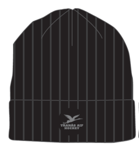 Tjock stickad mössa med TAIF-tryck.